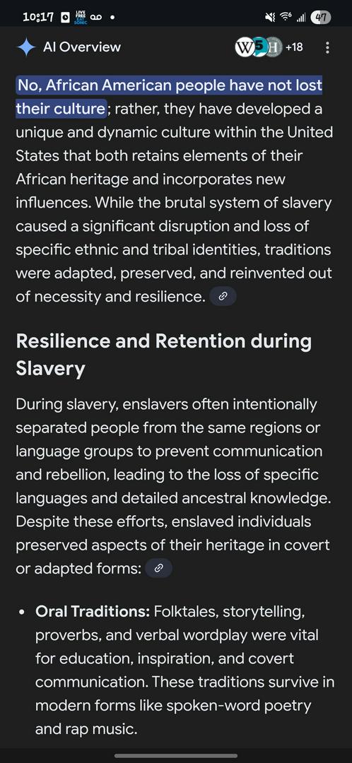 Haven't lost anything and that is why people want it. Those Botox shots that people are getting is the want of fullness that the culture genetically has. The sports that they bet and watch are the skills and strength that the culture genetically has. The things that is used daily around the world are the inventions that come from those genetic genes that God have to show us that nothing is beyond reach fispite the system that tries to hender progress. When you can see out of the eye surgery it's because what has been INPLANTED genetically allowed a black woman to create the cure without DEI. The broom you pick up to sweep is the coulter of thinking that comes with that blood line. When you make your kids a peanut butter and jelly sandwich you are eating the creation of the culture. WHEN YOU LOOK TO THE STARS A BLACK WOMAN HAD THE MATHEMATICS GOD PROVIDED THE BRAIN POWER TO THE BLACK WOMAN THAT HAD THE FIGURES TO FINISH THE FORMULARY TO LAND. THEY WANT YOU TO THINK YOU HAVE NOTHING.