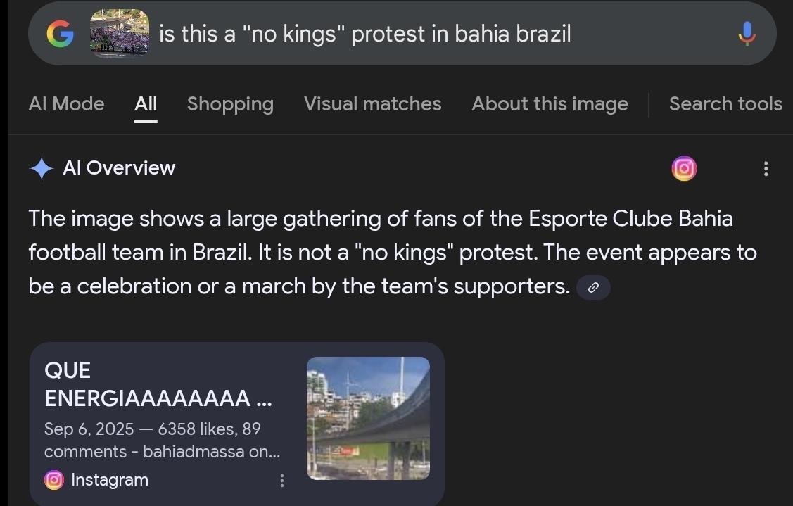 The image shows a large gathering of fans of the Esporte Clube Bahia football team, which is based in Salvador, the capital of the state of Bahia, Brazil. The crowd is celebrating a victory. The team is often referred to as "Bahia" and its fans as "Nação Tricolor". These fans are shown with flags and banners, while celebrating their team's WIN! Listen, Read, and try to Comprehend... OK, y'all ready??? This 👆🏻... This 👆🏻 there... This video is not... IS NOT... one more time for those in the back... IS NOT A "NO KINGS" protest... N.O.T.T.T. a "NO KINGS" rally, protest, or a get together of "The Dumbest People in America" (Damn, that is a great Reality Show idea) Anyways... Pay Attention... Bless y'alls hearts 🙏🏻 ❤️ 🇺🇸 🤍 🇺🇸 🩵 🇺🇸