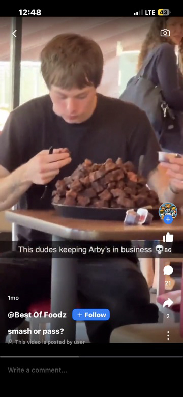 He’s the only one because Arbys’s is gross!