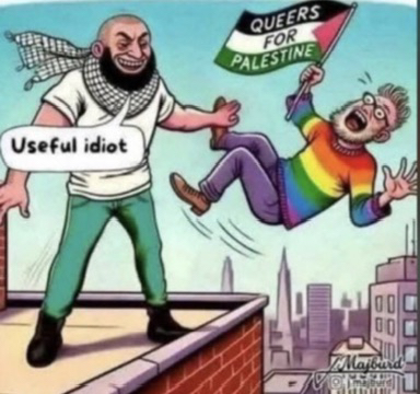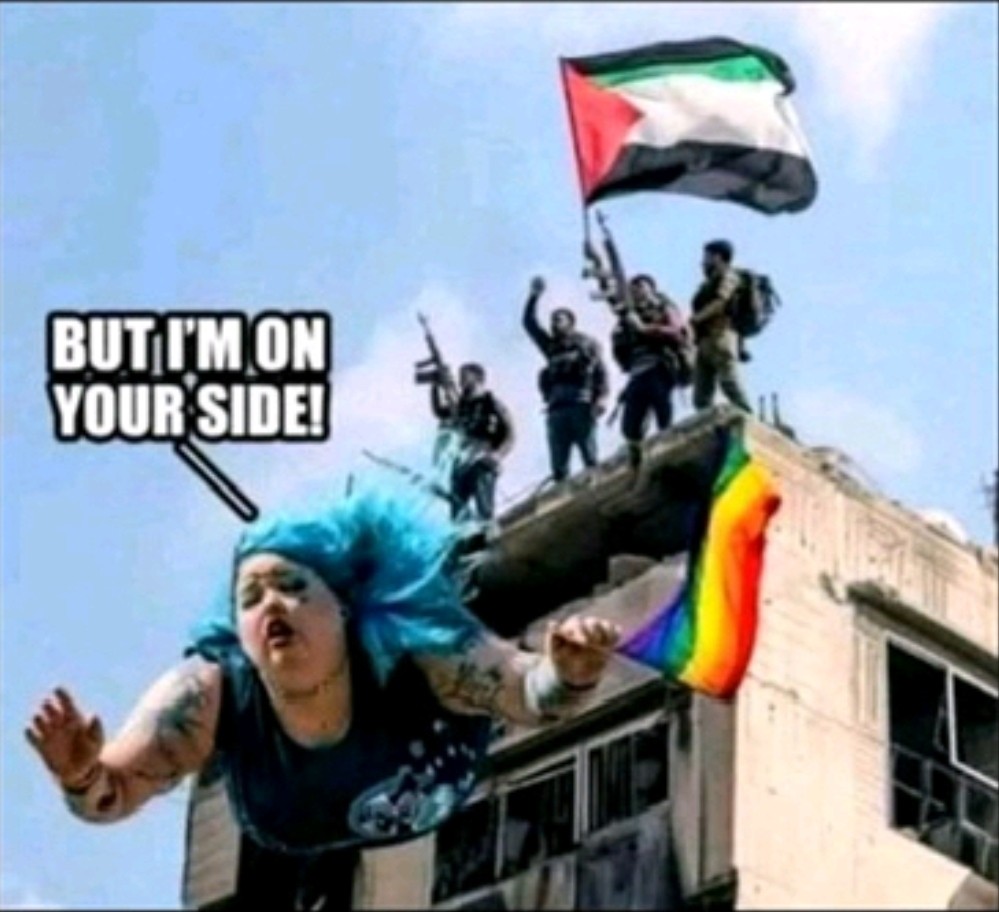 She just glosses over the fact she and her friend would be executed in Palestine. No impact on her what so ever. How do you reason with idiots who think this way??