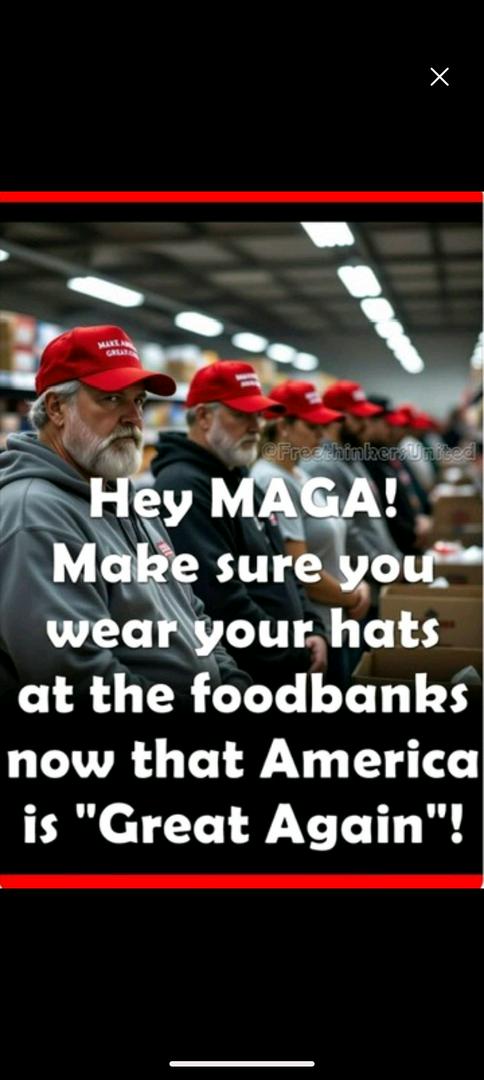 it always makes me laugh when you see trump supporters at the food bank I wonder why they don't wear their maga hats at food give always?