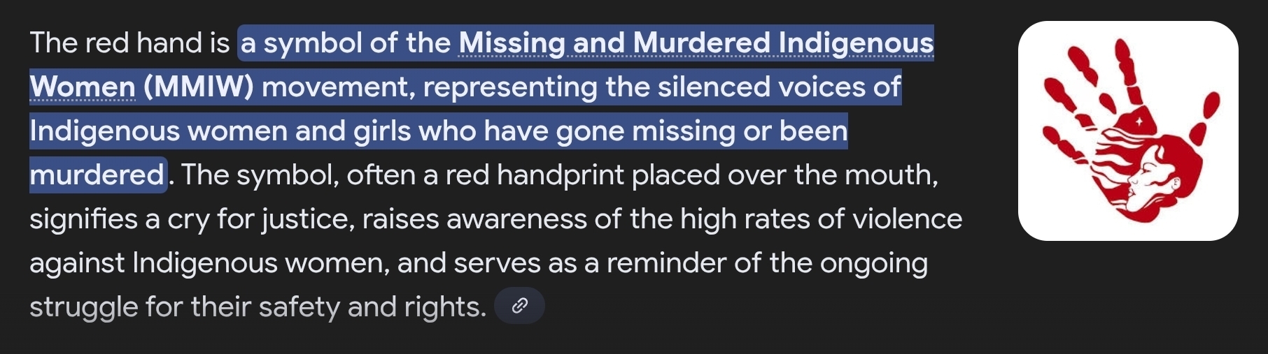 Boozhoo, I see a red hand and I think to say; NO MORE STOLEN SISTERS!!!!, Baamaapii,