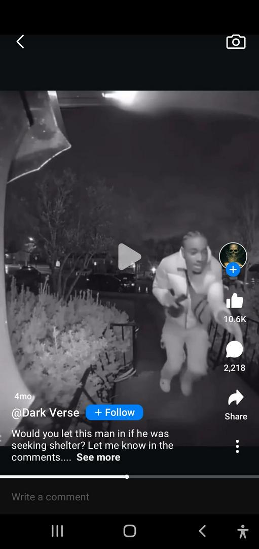 black man at my door middle of the night being shot at carrying a purse and wearing a pants of a 12 year old boy.