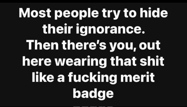I can't understand why maga people are so proud to be so damn stupid and ignorant, they wear it like a badge of honor