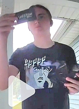 what is he putting in his mouth?