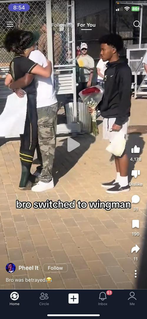 that was the guy holding the sign girl, the guy with the roses was just supposed to give her roses because the guy holding the sign wanted it to be more dramatic and he tried to give her the roses to late. hopefully yall understand the video better now.