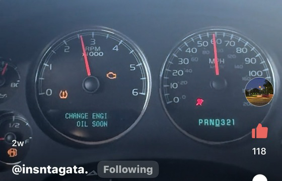 Engine light, Brakes light, Oil light, Tire light and Gas light on... 😂 He needs to worry about whether the car's going to fall apart at 70 MPH. 😂 😂 😂