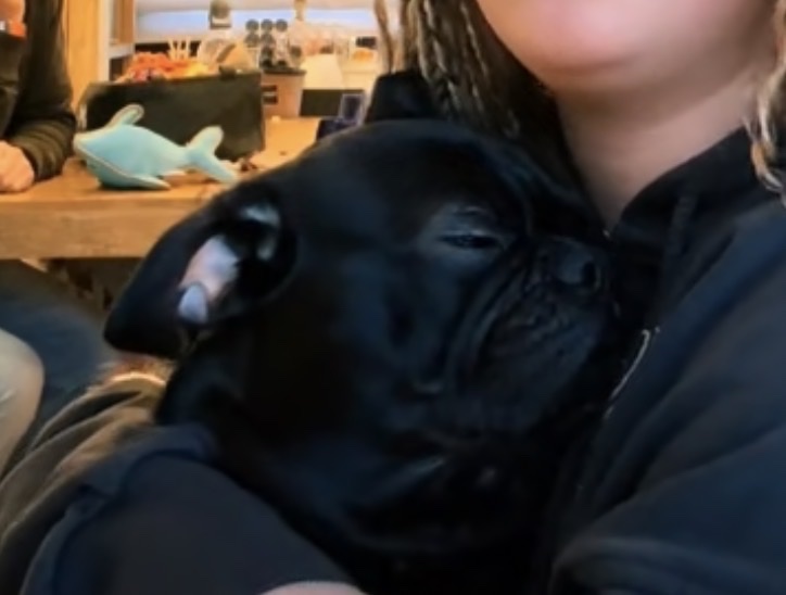 The Frenchie was digging it til she hit the high notes 😂🤣🎧