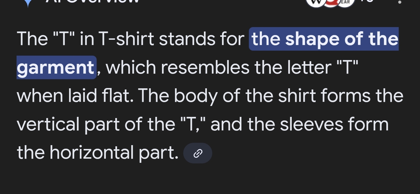 back in the day when the Boston tea party happened someone spilled tea on their shirt hence the name tea shirt shortened to T- shirt for stupid people