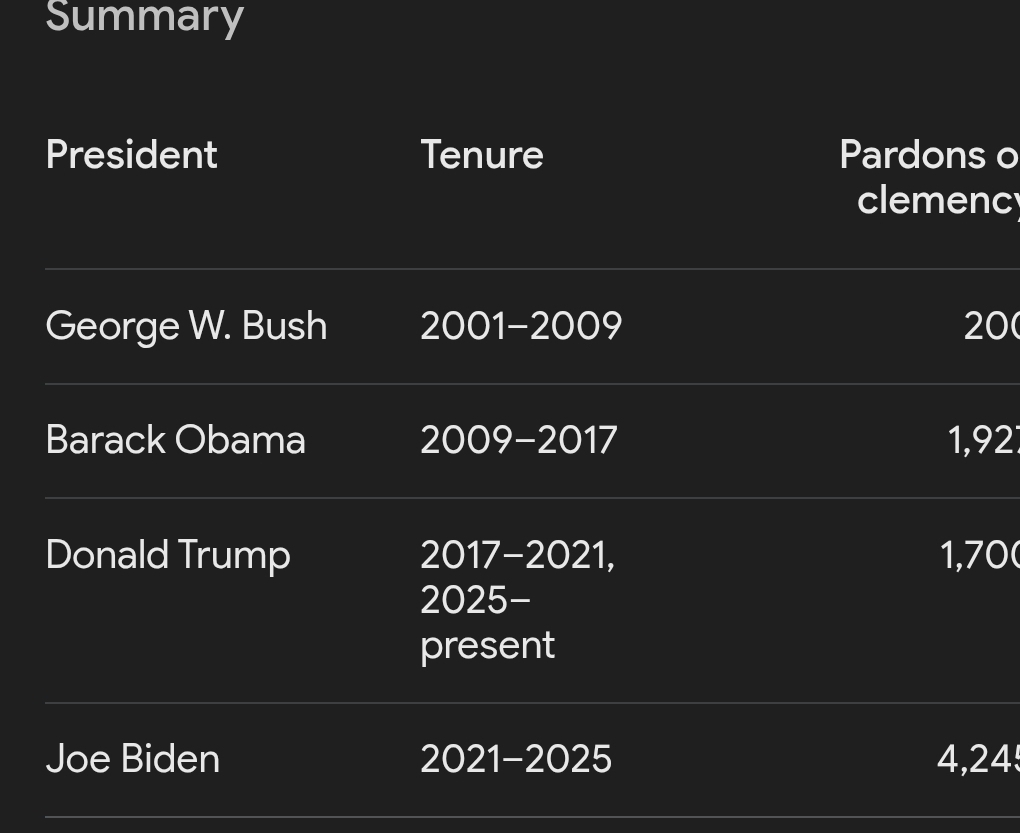 No, Trump is pardoning white-collar criminals like himself trump pardoned Paul Walczak a Man who stole millions from the people that worked for him, he stole their Social Security and medicare payments, and instead of sending it to Social Security and Medicare. He was caught, and sentenced to pay FOUR MILLION dollars in fines and repay the money he stole. He was sentenced to 4+ years in jail. His mother was invited to a ONE MILLION. DOLLAR a plate dinner at the white house./With Trump and two weeks later Trump pardoned him. Trump also just pardoned a man known as CZ a humas money man, a terrorist. The Pentagon said he was a national security risk to America . Trump pardoned him. Two weeks later he gave trumps sons Donald Jr. And Eric trump . TWO BILLION DOLLARS To start trumps Bitcoin Company WORLD. Financial Trump is selling pardons , for his and his families good. Greed.