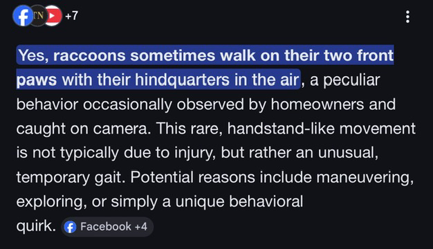 dang never seen or new a raccoon could walk on its hands. must have escaped from the circus.