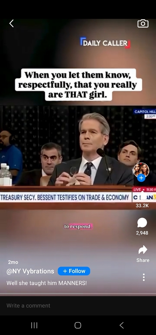 I love this lady! Bessent is a Trump lackey who thinks he’s better than everyone because of his wealth.