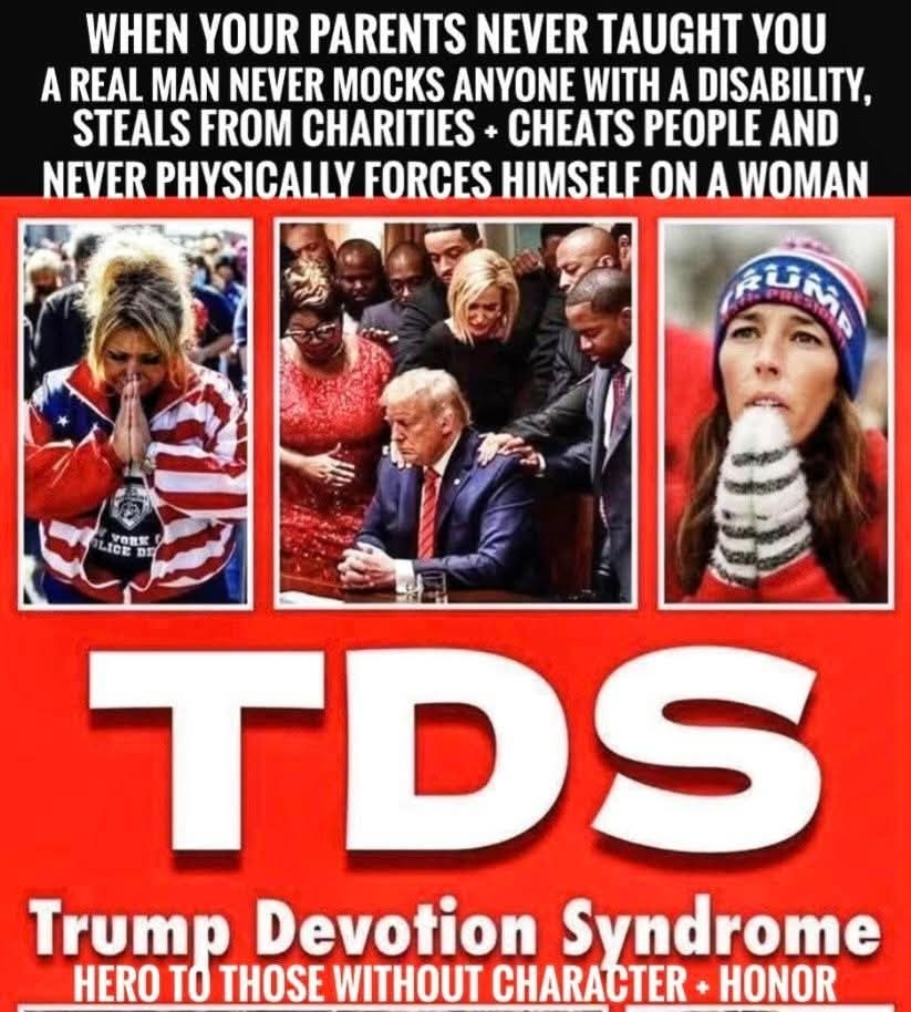 As opposed to the loons in the White Nationalists party (maga, Republicans, Evangelical Christians (aka kristian-taliban)) that wears a Kotex on their ears. Wears a diaper. Wears hats & clothing with trump's name. Decorate trucks & front lawns with trump flags. Violently storm the Capitol, attack police, in support of a trump coup. Attempt to murder the Vice President & Speaker of the House. Throw the American flag to the floor & hoist a trump flag. Defecate & urinate & spread feces on walls, desks & equipment. Send money to a BILLIONAIRE for his legal defense. Buy trump paraphernalia watches, sneakers, etc. Support a convicted felon, ajudicated rapist, thief of classified documents, 2x impeached president. Justify the witholding (& stripping names) the Epstein documents. & support anything & everything & worship him as YOUR daddy-god! YOU people attribute TDS to the wrong group of people!
