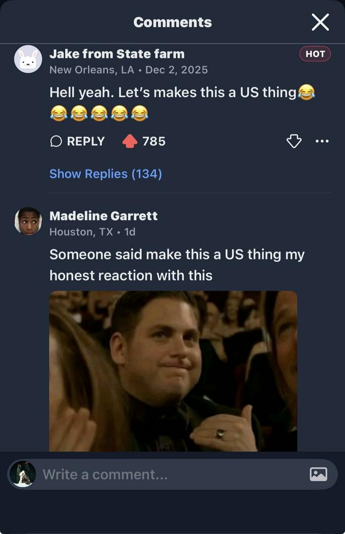 Hell yeah. Let’s makes this a US thing😂😂😂😂😂😂