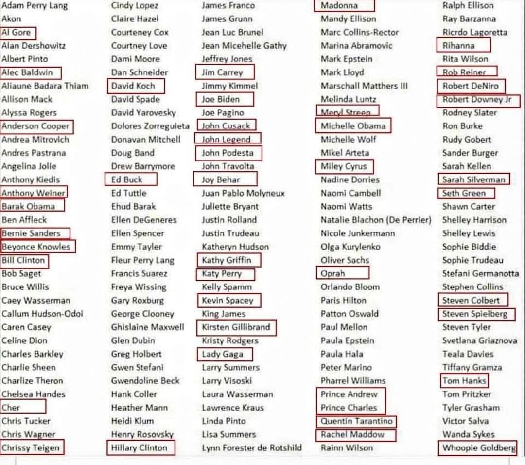 That's because he knows it's some big people with uncles aunts n daughters have all been there, no way they will let the names out, it's literally everyone in Congress, government and all of Hollywood..so should it really be out ??!