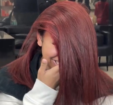 Her hair came out great!! That red is pretty hard to get on coarse dark hair. That girl obv takes good care of her hair or that would not have come out so good! The hairdresser is clearly very impressed with herself too. What a salon success right there! We all know those reds can be a doozy sometimes! Color looks great on her. Wish the video was just a lil bit longer so we could've seen her flip it too