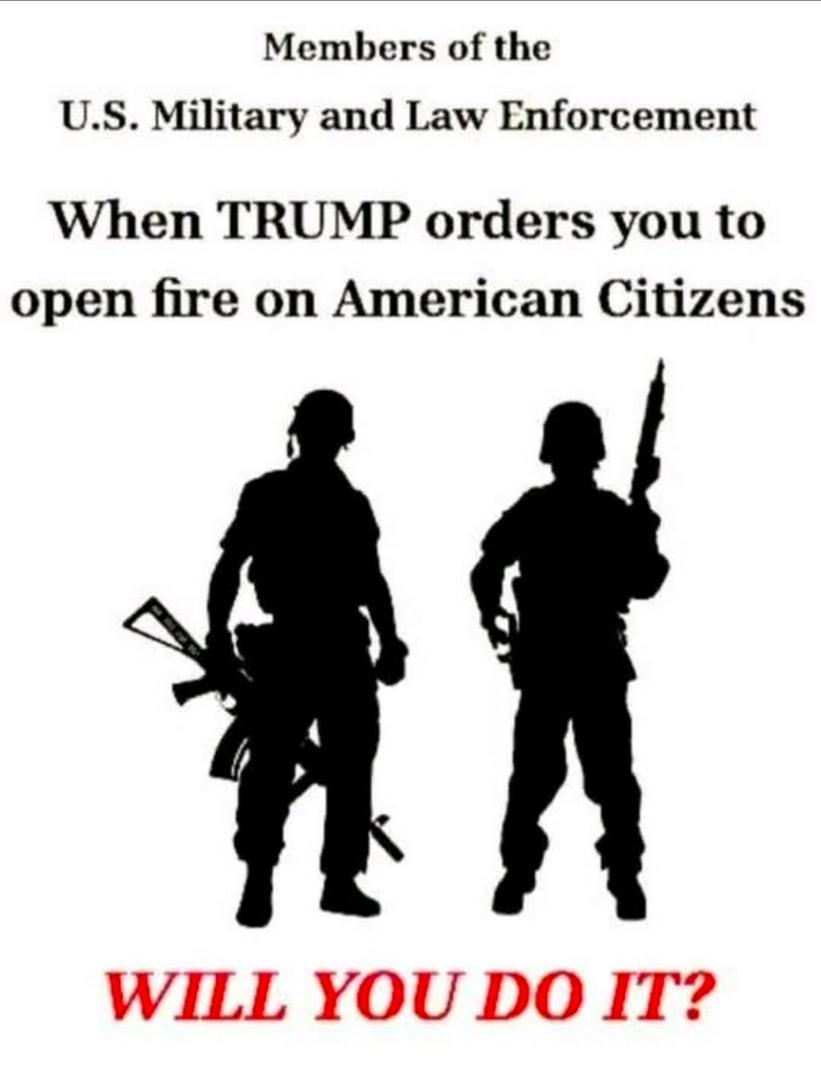Wow, our soldiers are trained or brainwashed.? if it isn't made clear to them that their is no person by as the power to override the Constitution of the United States and there's a difference between a lawful and unlawful order, what's going on?