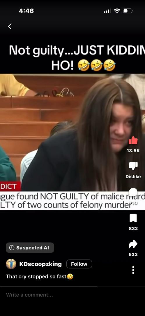 she sobered up quick when she heard guilty for murder.