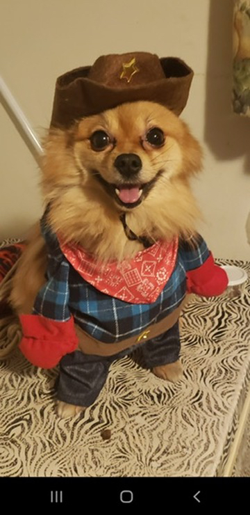 i thought maybe he was the pet with that faux fur thing he's got on.