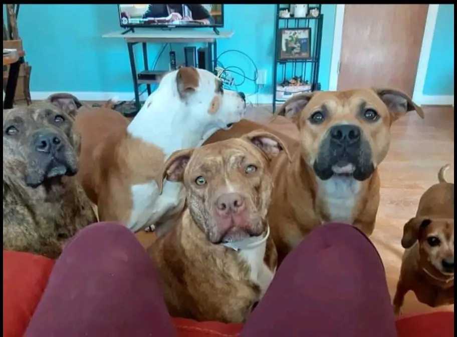 That pitbull knows them other dogs are behind a fence