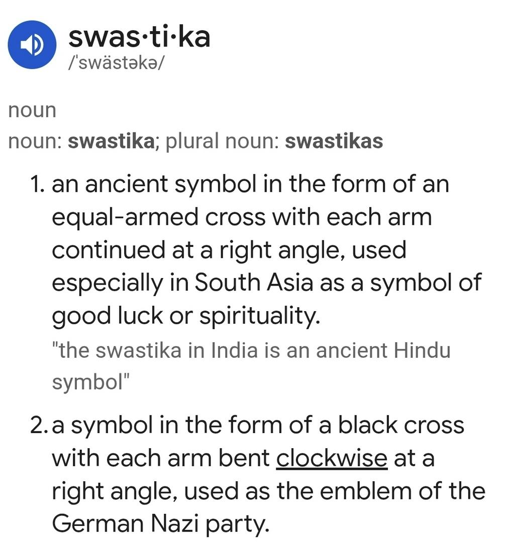 the real history of the swastika comes from India culture that's the original origin look it up it's still not okay I get it but it could be for other people to understand there culture just do research before getting upset over something you don't understand again swastika is not okay in the since your thinking for sure but read and learn before judging it's something I just recently learned about it always associated it with Hitler but that's not the origin Hitler stole it from India culture