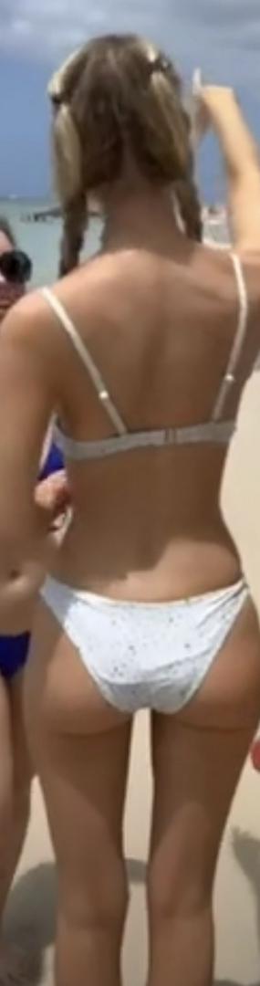 these videos are so lame, you me to tell me she didn't feel something pulling at her bikini bottoms