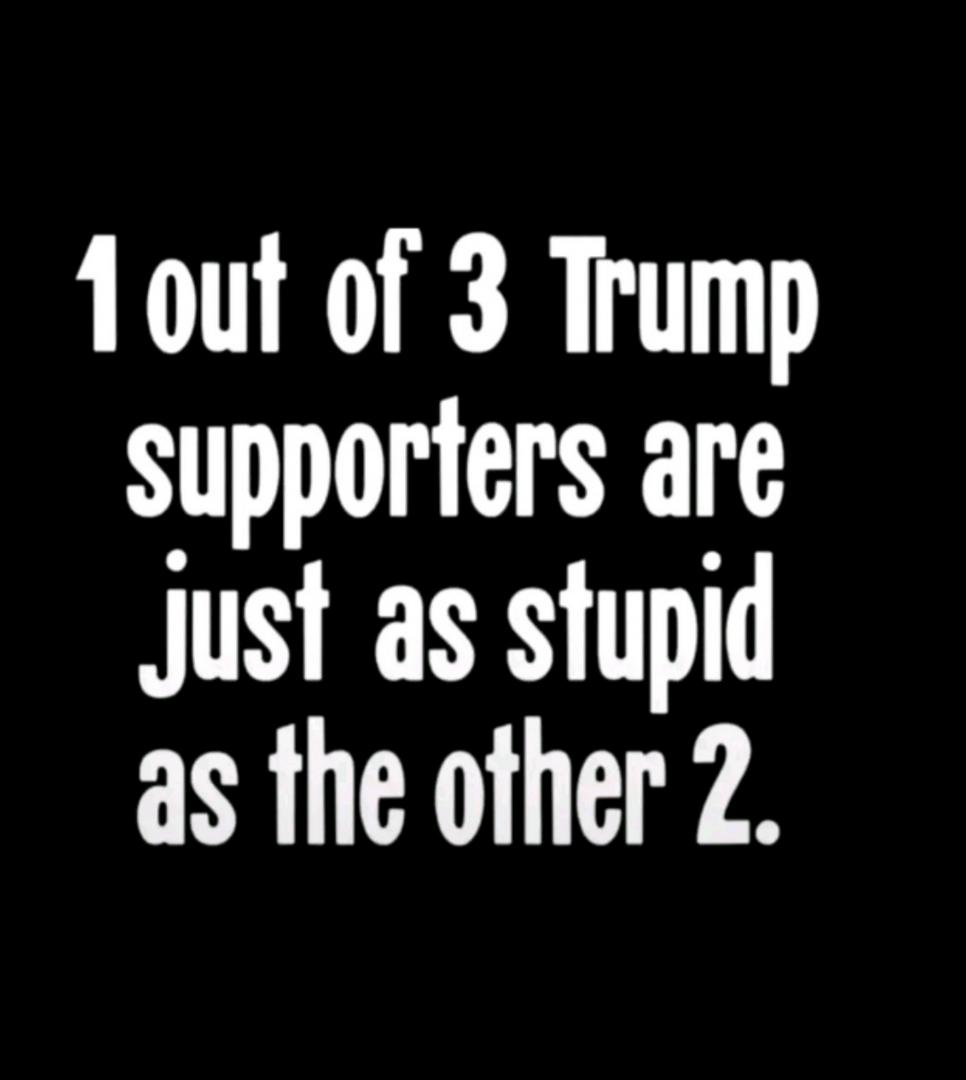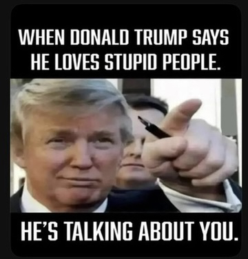 Disgusting Disgraceful Delusional Donny Drumpf is a narcissistic, fascist child that believes his own lies and his cult followers are total imbeciles, just like him. Trump said it himself, "Smart people don't like me, but I love my stupid people"
