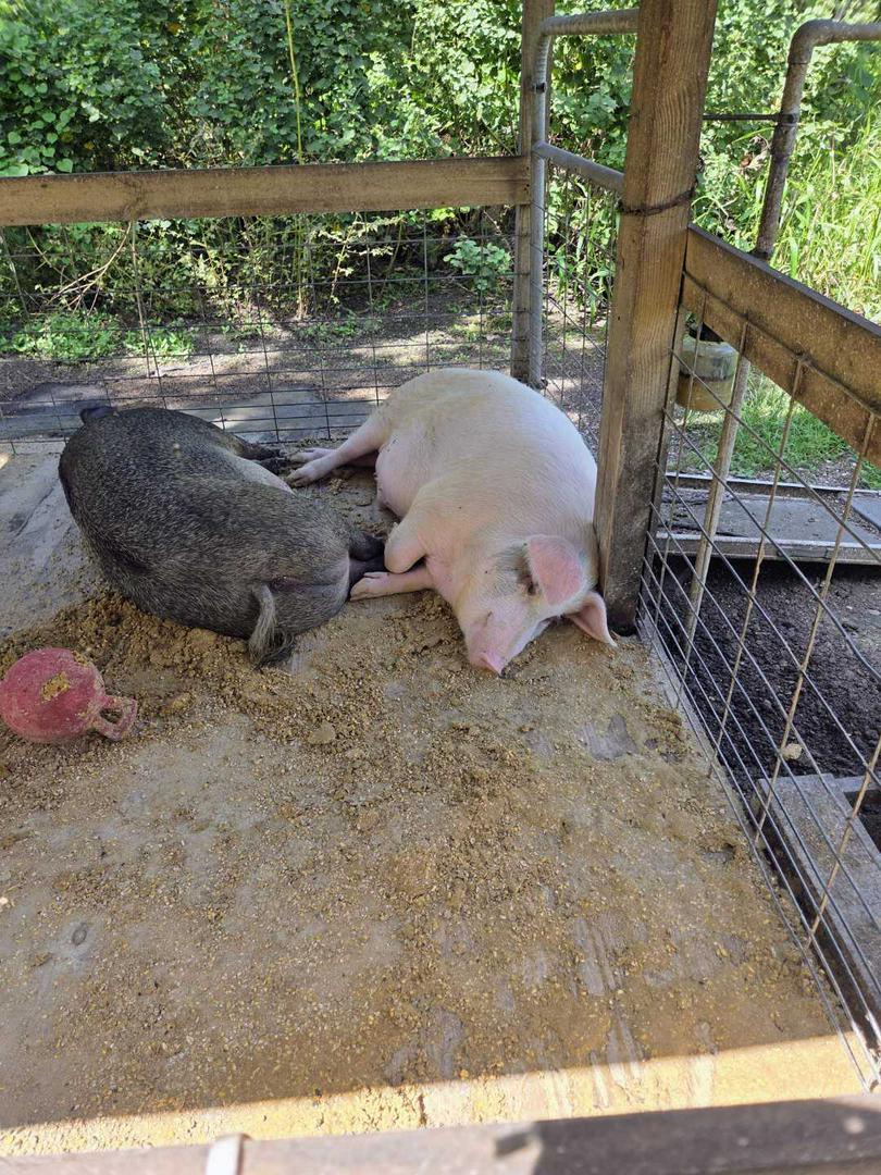 This grows up to be this. 6 lbs to 350 lbs in 2 years. 200 lbs of meat.15 lbs of bacon.🤔😆👍