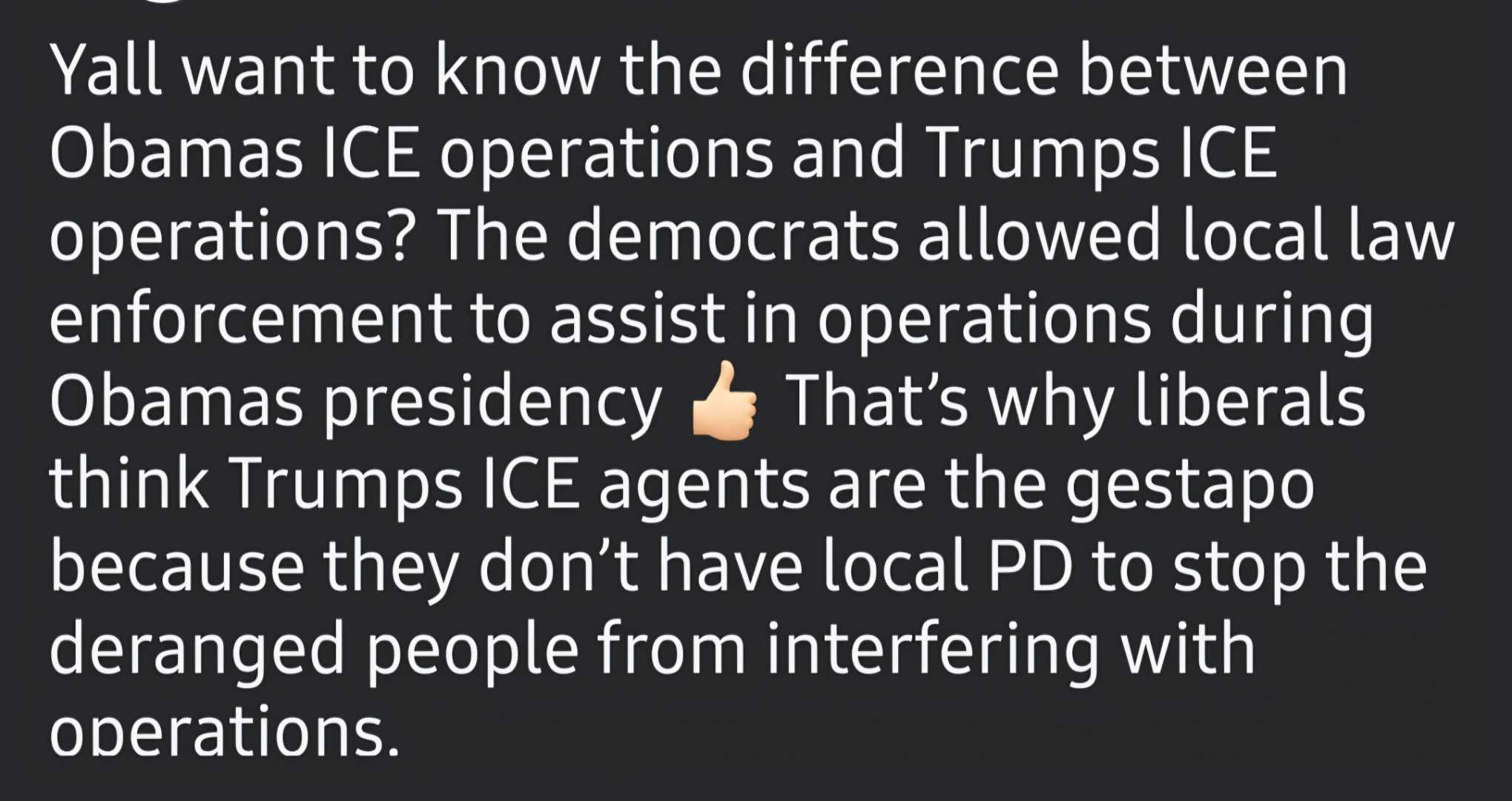 If you don't like what's happening, it was brought on by the previous treasonous administration, and you should protest law makers, not law enforcement.