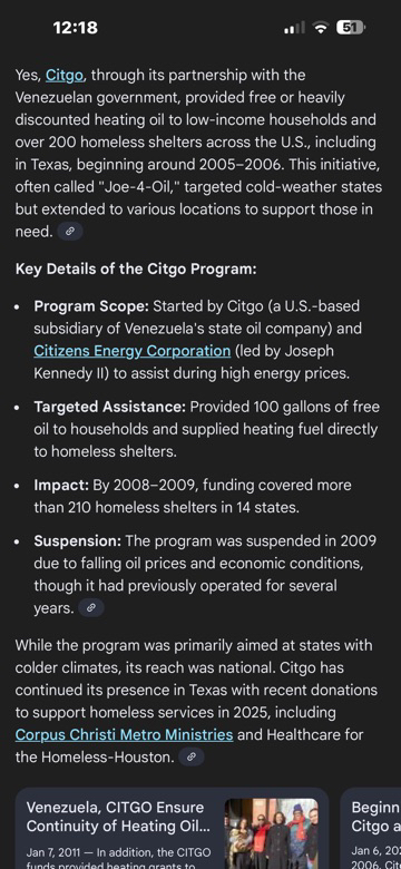 Citgo was giving grants away to organizations that applied & were qualified. Some areas like N.E. they donated heating oil through partnerships with suppliers.