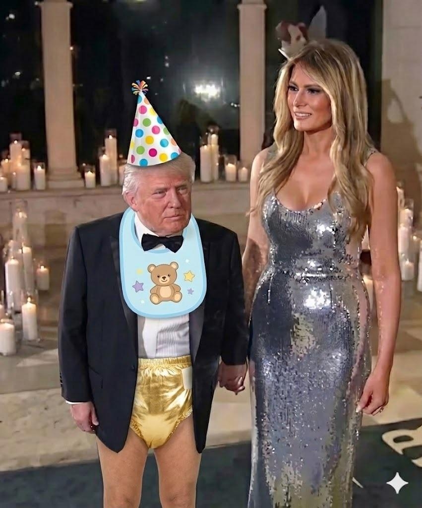 He's wearing Men's Spanx over those XXL DEPENDS, trying to look slim🤮🤮🤣🤣🤣🤣