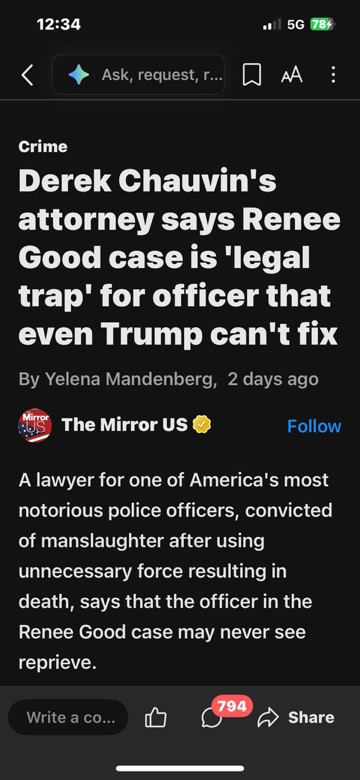you saw on January 7 2026 a women who was blocking the road from ice agent from doing there job the ice agent were trying to get a child molested n she stop them. And she hit the ice agent with her car n got shot there videos proof she hit the ice agent so therefore it was self defense now these are the facts n truth its hard to believe because you guys do not like facts n truth or you guys do not facts check