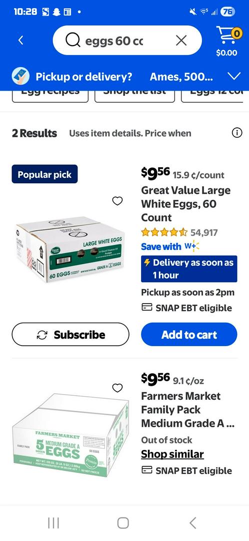 Walmart for 60 eggs right now it's $20