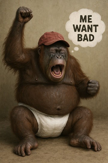 Could it be because he’s a petulant child? Give gimme gimmes it’s mine I want it.