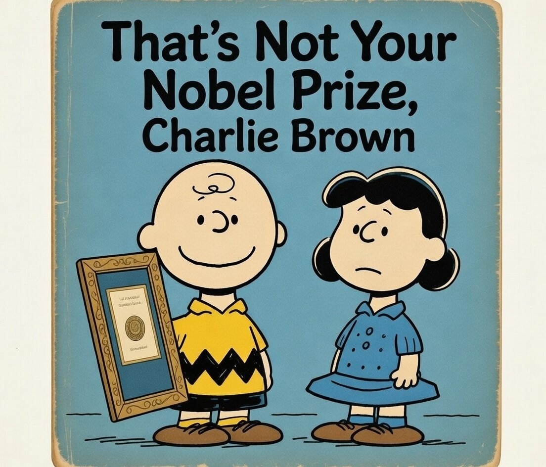 This fool thinks someone can just give him their Nobel Prize, like a leftover Subway sammich?