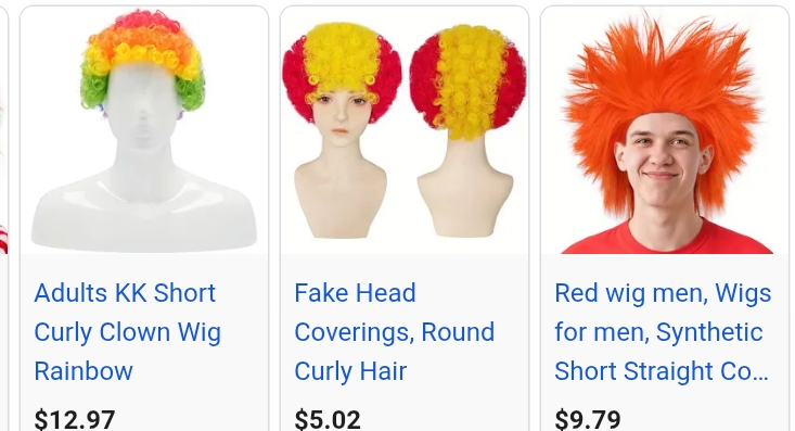 looked up clown wigs