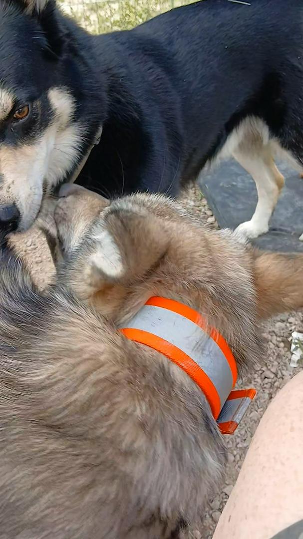 She's using her teeth to put pressure on the vulnerable sensitive pressure points under the males bottom jaw. The inside of that bone like ours is sensitive when gouged. I used to watch my huskies do this. Once when I was attacked by one of our neighbors dogs at 13, I used the same spot, and he cowardly retreated and never fucked with me again. Another time a group of coyotes attacked a girlfriend of mine and i tried to use a stick and rocks to fight them off. One grabbed my face and took me to the ground. I had to take its life! This did not work! First went the right eye.. when it kept biting my hands as i was trying to get his jaw! I felt terrible . I wish it didnt have to happen.I was protecting my own. It was necessary. If you're ever faced with a situation where you're under a dog attacking you and that doesn't work. Insert your entire arm into their stomach and grab whatever you can. It shouldn't come to this .. they like to release when you start to pass their throat .