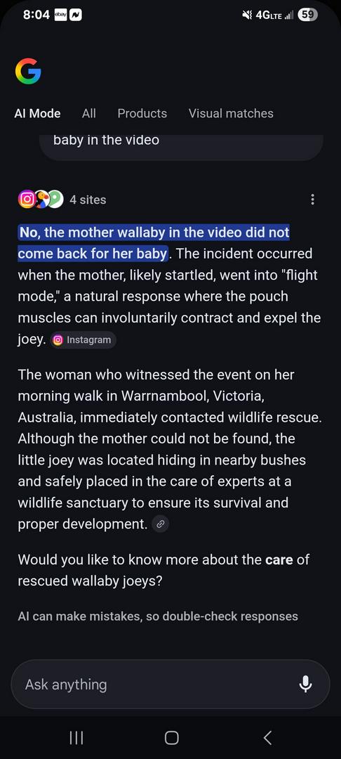 👍🏼🥰💕thank you so much for this info! Poor mama when she realizes her little Joey isn’t still tucked in her pouch. But thank goodness the lady did what she did!