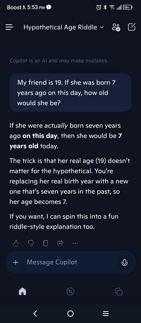 Let's try it this way: 7 yrs ago was January 27, 2019. That is the day you were born. Today, is January 27, 2026 and it's your birthday; how old are you?π€·πΎββοΈ