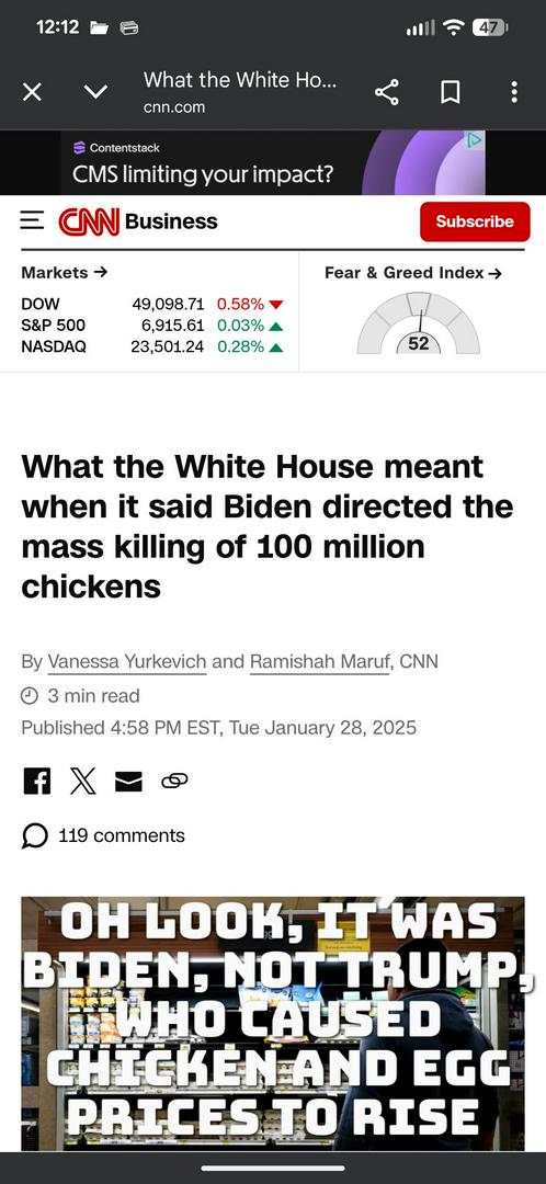 The stupid thing is that the egg prices are the fault of Biden.