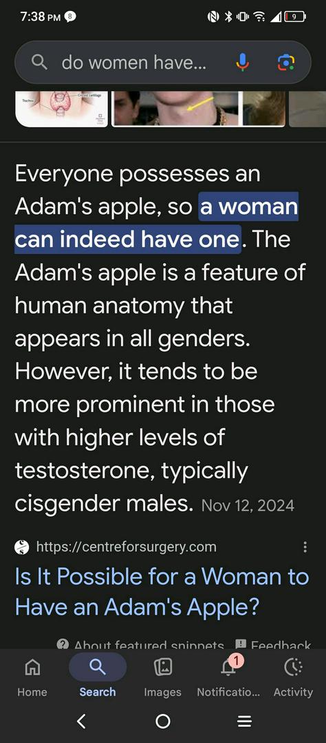 Adam's apple means male.