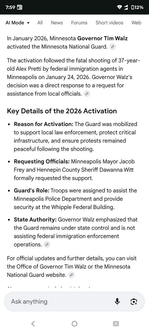 I thought it was gov. walz that activated the national guard to help protect the citizens in Minnesota from ice...
