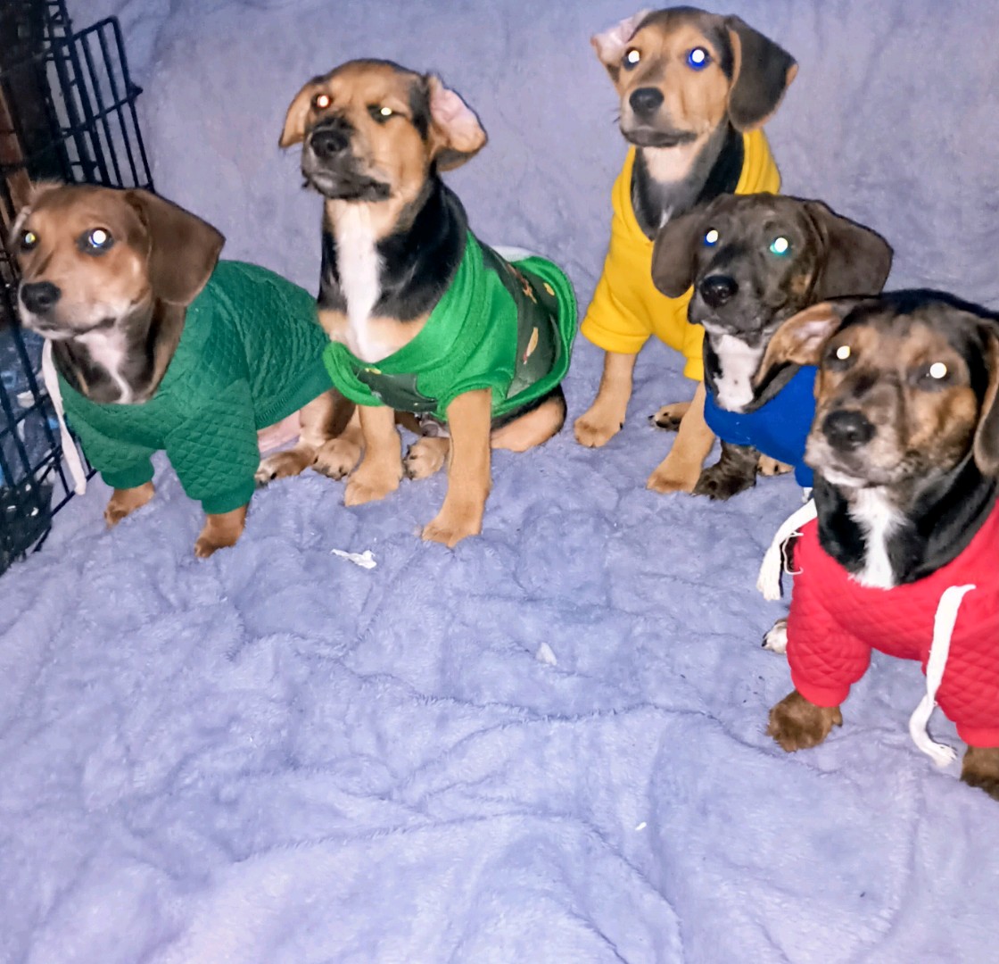 Here are 5 Beagle mix puppies waiting for your class to start