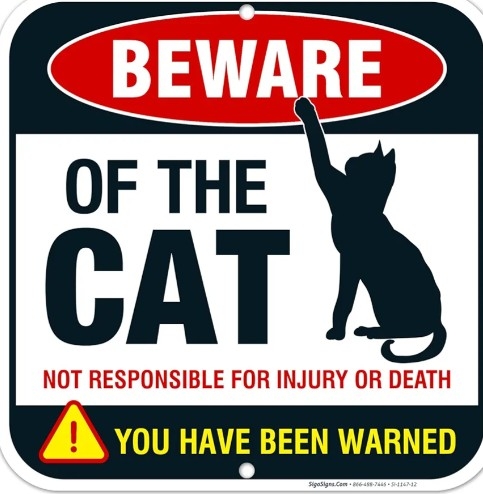 He did see the warning sign, an attack cat lives here...🤣🤣🤣🤣🤣