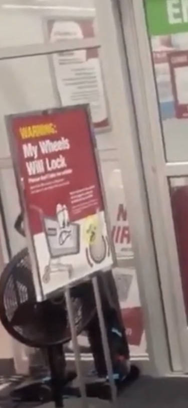 the guy going out the store pushing a cart