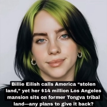 so we keep coming back to stolen land, stolen by who when where and why ? I was born here. native Americans stole this land from each other and Mexico sold their land and or lost it to the United States you want to talk about stolen land Hawaii was stolen from its people and other places like it, but settlers moved here to the states way back when and obviously settled and thus America was born so if someone lost in a war or sold their land how does that make it stolen? I don't get it and I also believe that celebrities and famous people alike should keep their political opinions to themselves and stick to what it is they are known for and it isn't politics, this all being my personal opinions and questions