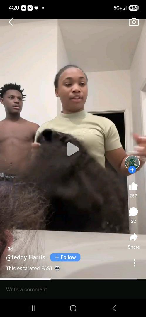 She snatched that wig off & he went to workβ¦He already knew what time it was. It was pretty obvious that he was embarrassed at first, but tried to play it off, real quick. Theyβre cute in their own little way. For future reference ladies please STOP snatching yβall Wigβs off on social media. Not cute, very tacky.π€(J.s.)π€