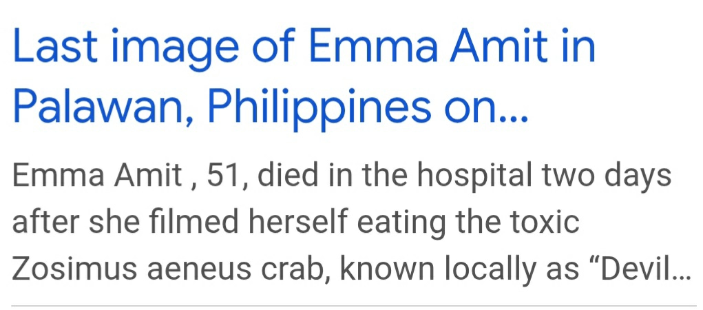 The woman, Emma Amit shown here, ate these crabs and DOED TWO DAYS LATER! Danger in raw foods…especially seafoods