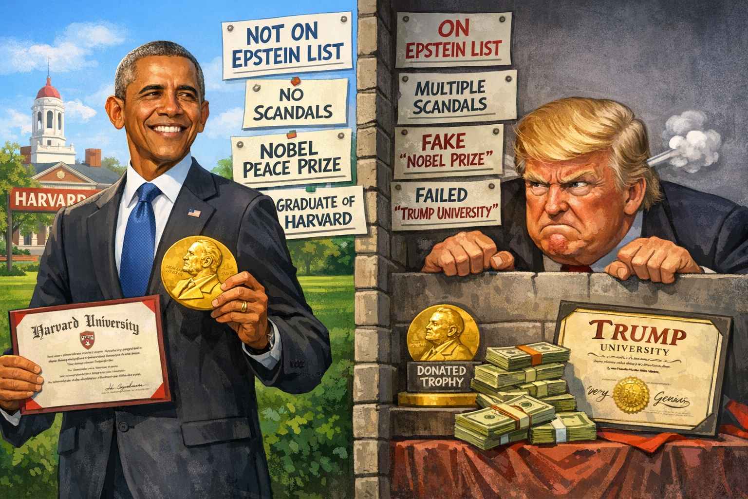 there is no comparison....Obama is a real man with no charges in court, never went to Epstein island, not a abuser, no scandal, Even the true Republicans love him , Trumpstein is full of scandals, narcissist, traitor, dictator, PEDOPHILE, sex offender, rat with dementia,killer, criminal. and you are trying to compare? Really?