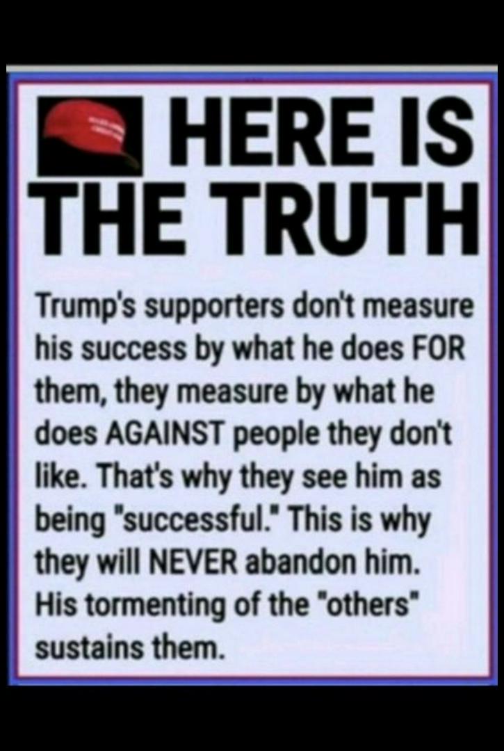 at this point,the only reason anyone supports trump, is that their hearts are so full of hatred ! or envy and greed ! if your not benefiting financially, you must be full of hate ! but its your greed that drives your hate, accompanied by envy ! you see the billionaire and want what they have ! and hate all around you because you haven't got it ! and too dumb to see the game is rigged against you ! your only salvation is to seek Jesus ! repent before time runs out ! judgement day is fast approaching ! may you seek and find the lords mercy !